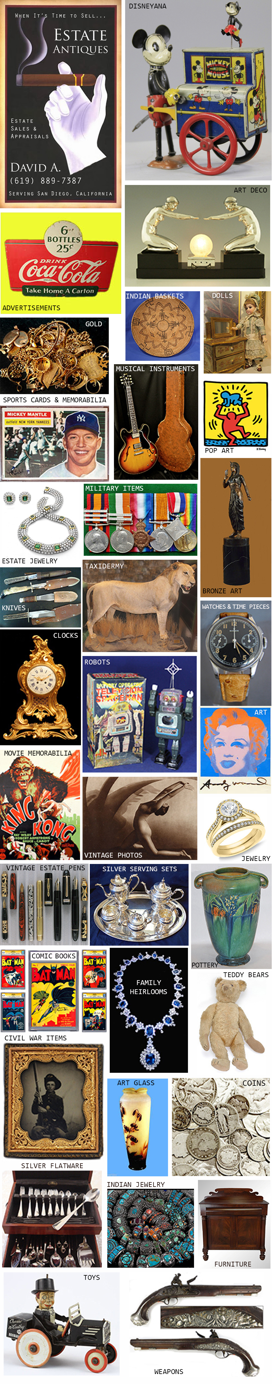 We are buying antiques and collectibles and entire collections, paying top dollar. We are looking for heirlooms, jewelry, fine and costume, watches, coins, silverware, art, pottery, old toys, comics, sports cards & memorabilia, military items, knifes & weapons, Native American Indian items, old fishing items, music and movie items, old photos. oddities always!!!