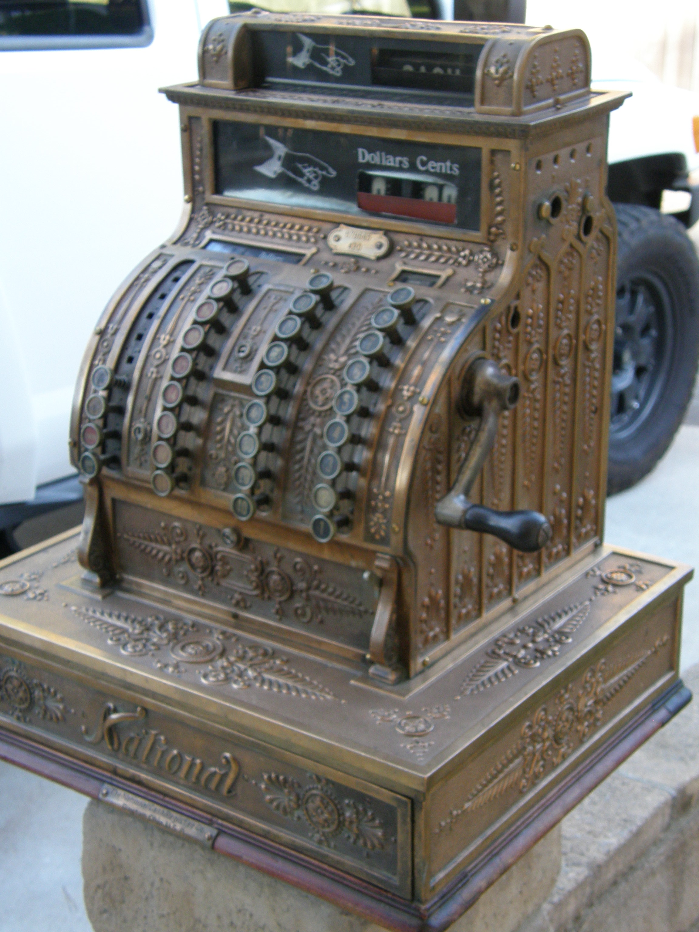 Early National Cash Register. It weighs over 200+ pounds. It is a work of art works great! A unique fact NCR was founded in 1884 and acquired by AT&T in 1991. NCR is one of the first modern American companies, introducing new an aggressive sales methods of business techniques. They established the first sales training school in 1893, and introduced a comprehensive social welfare program for his factory workers. over 100 years later look where we have grown into almost very little money exchange.