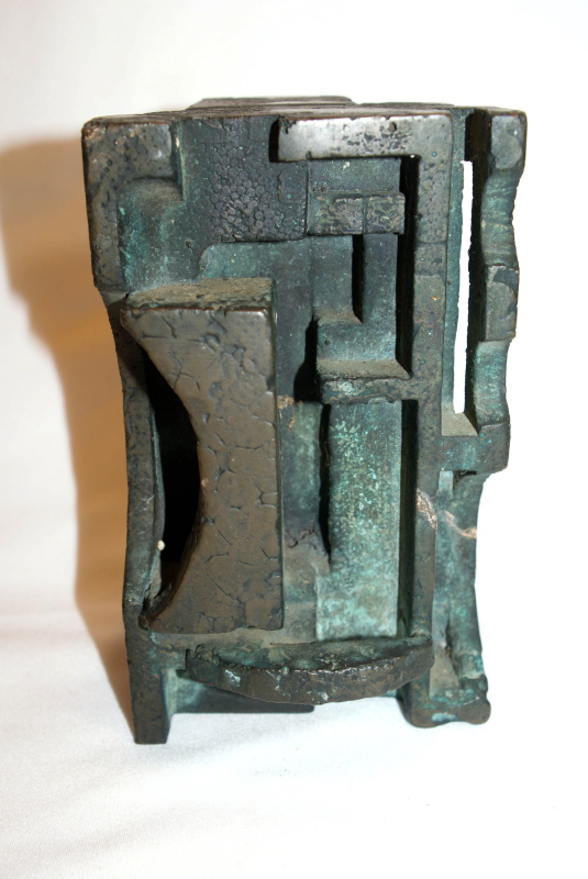 This is a wonderful vintage 1950’s bronze original art from Paul Evans. It is unsigned, I could not find initials or signature. This came from estate of person who had known Paul in PA in late 1950’s early 1960’s and was a gift. It is a super nice piece, It measures almost 7″ weighs over 25lbs solid bronze. An American born furniture designer, sculptor and artist, , who is famous for his contributions to American furniture design and the American Craft Movement of the 1970s, and with his work with the influential American manufacturer Directional Furniture. His creation of metal sculpted furniture set him apart.