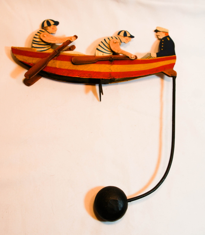VINTAGE METAL FOLK ART MOTION WIND GARDEN ART MARITIME ROWING BOAT